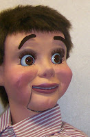 The actual Marvin the Martian character has no mouth (although he speaks), so you know what you see here is not intended to replicate the Looney Tune character itself. My puppet is a Ventrilo-ett, all decked out for a costume party in his brand new MTM2 costume. He may actually greet a few of the costumed youngsters who ring our doorbell tonight! One of these unique, limited edition ventrilo-etts can be delivered to your door as well.